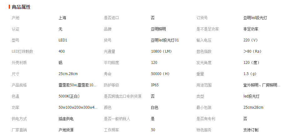上海亞明led投光燈50w