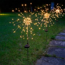 LED煙花燈太陽能地插銅線燈戶外草坪庭院裝飾圣誕燈串滿天星彩燈